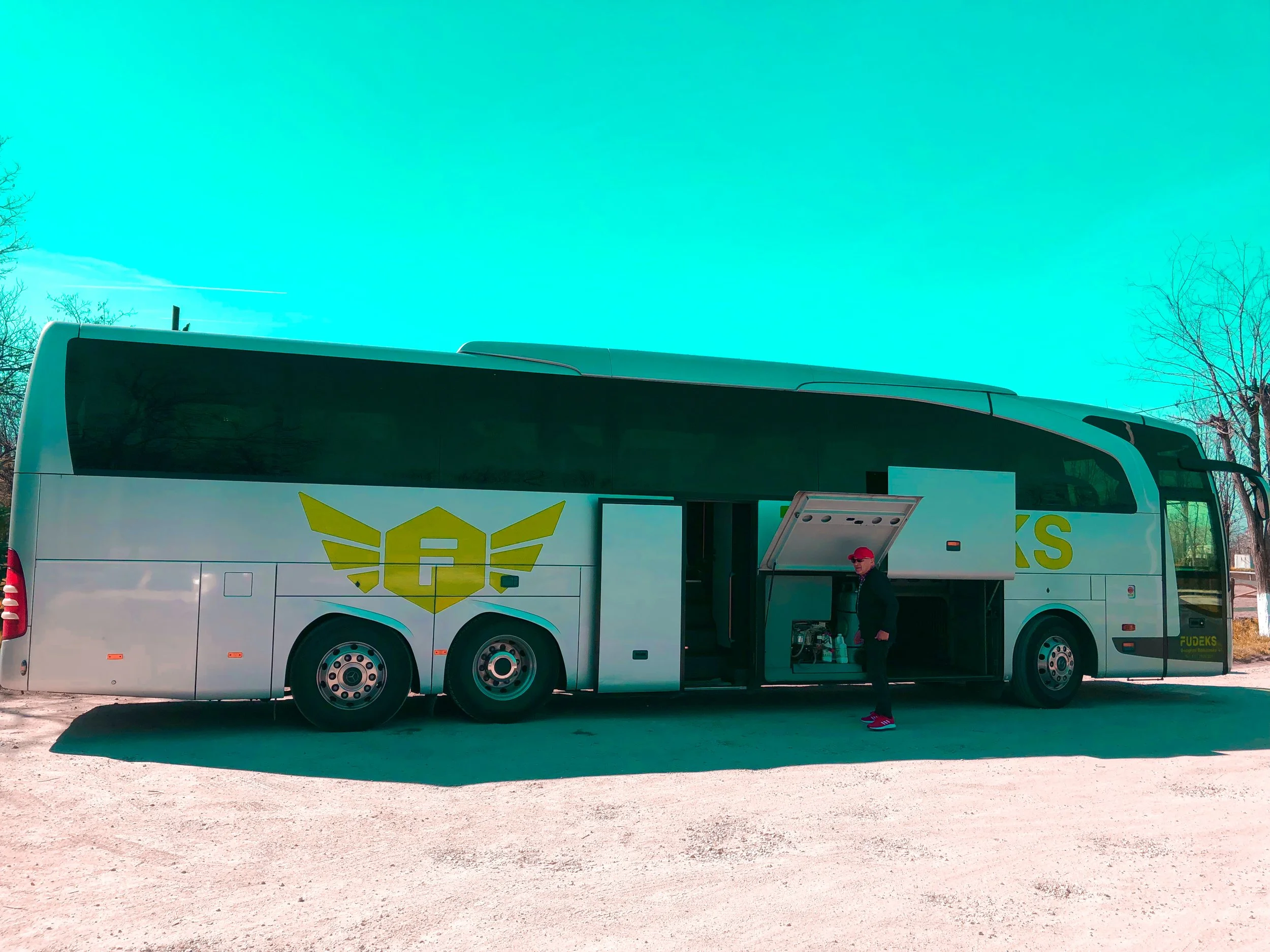 As always across the three days with us, he is in good spirits. The only english i remember of him is, when he proudly bragged about the fact, that this very bus, was a former Vfb Stuttgart Team Bus.
