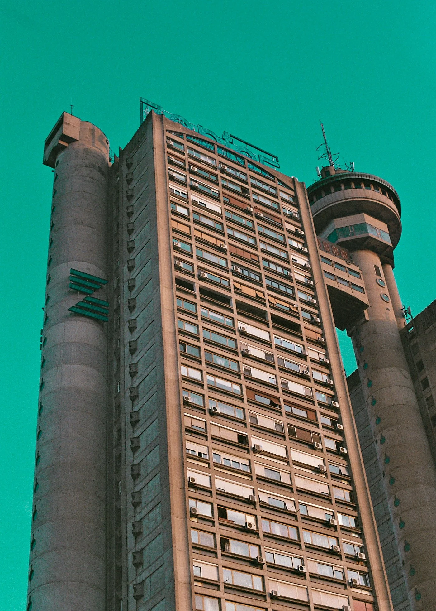 During a day-long bicycle tour through the City of Belgrade, we drive by the „Zgrada Zepter“. Presenting itself in twilight hour.