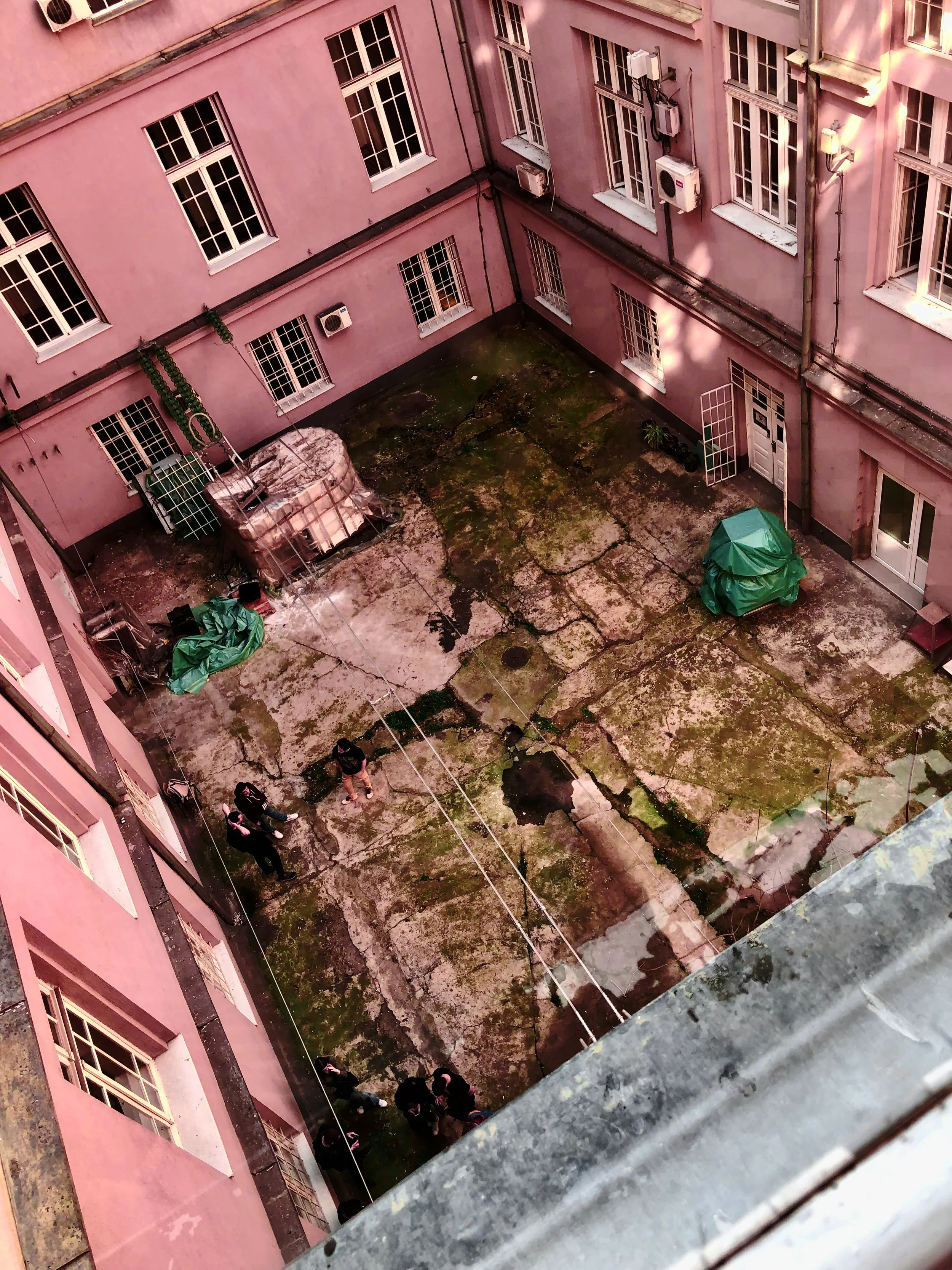 They are inmidst of their final reviews and we are very welcome to join the discussions. After architectural debates, we meet the local students in the hallway. They open, first a pack of cigarets, second, the tall windows facing the courtyard. We accept the invitation.